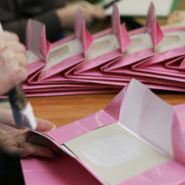 Производителю напольного покрытия потребовалось наглядно показать свою продукцию. В данном случае папка – это уникальная упаковка для образцов: содержит рекламируемый материал и предоставляет информацию о нем. Мы смогли разместить образцы в центре с помощью индивидуального ложемента из изолона. А вся информация с текстом и фотографиями печаталась на мелованной бумаге и кашировалась на основу из плотного картона.