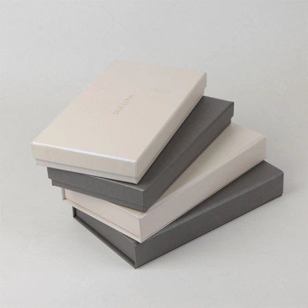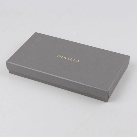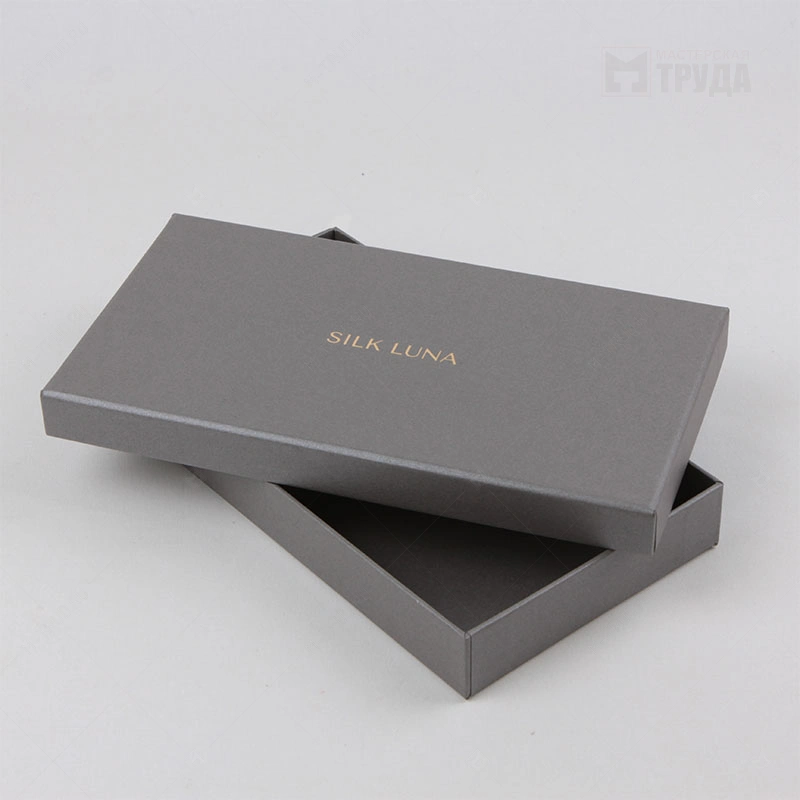 Коробка крышка дно плоская серая с тиснением логотипа для шелковых платков