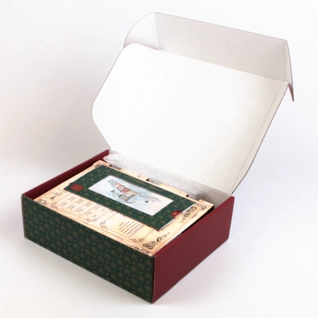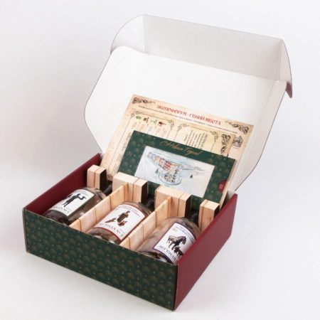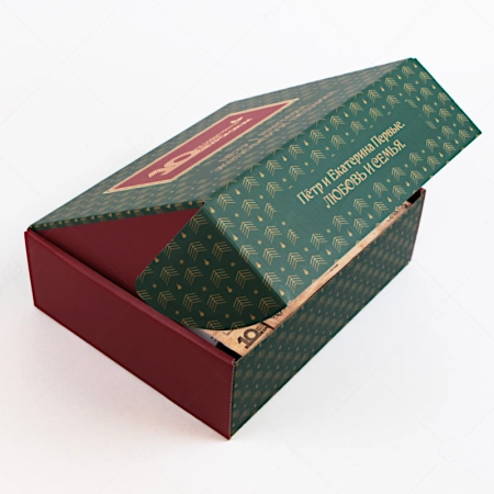 Коробка самосборная из МГК с офсетной печатью и тиснением под новогодний подарочный набор