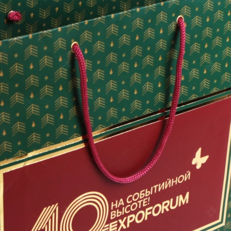 Бумажный пакет А3 с полноцветной печатью и тиснением под новогодний подарочный набор